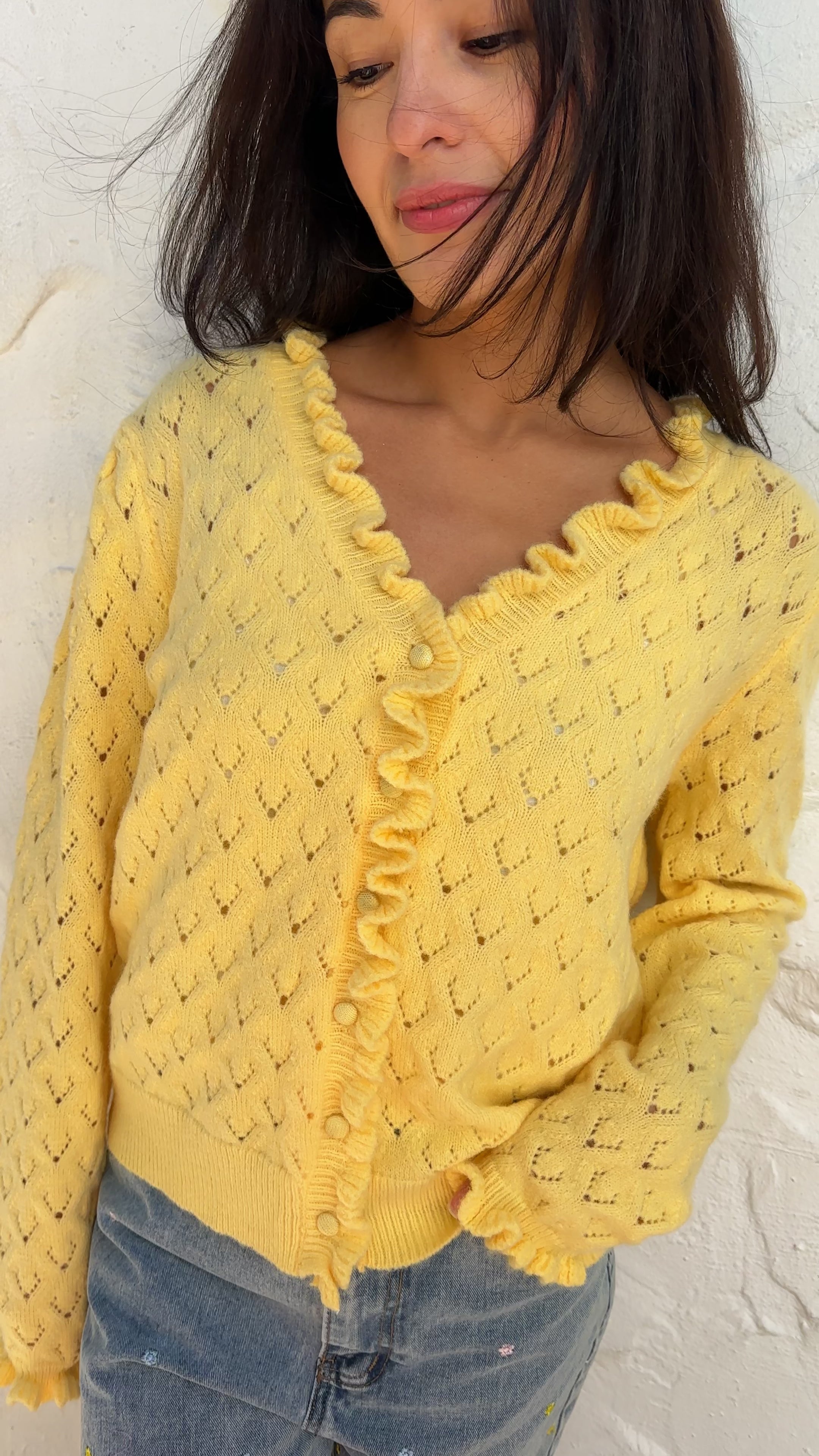 Un cardigan lumineux et délicat, pensé pour réchauffer la silhouette avec élégance.